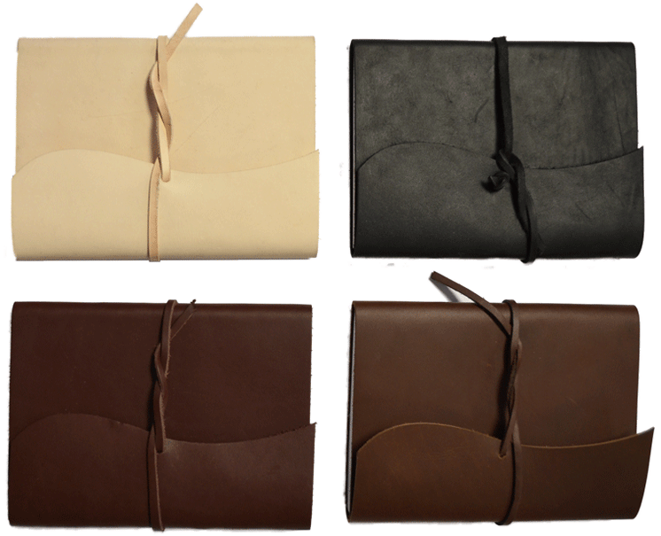 | belting full–grain leather covers. Leather wrap tie closure. Durable handmade journal books. Case–bound diary has a personal info sheet with 80 sheets of lined white paper. Burgundy, British Tan, Black or Natural Cover Colors.